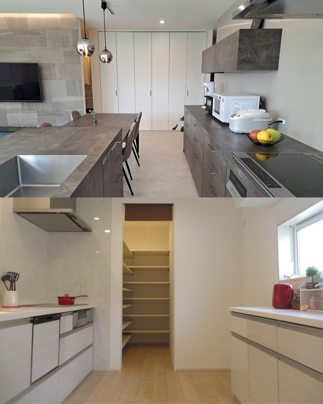 キッチンの収納には床下収納やパントリー収納等ありますが、調理や家族の移動の邪魔にならないように作業効率や動線に配慮した収納スペースの計画が大切です。