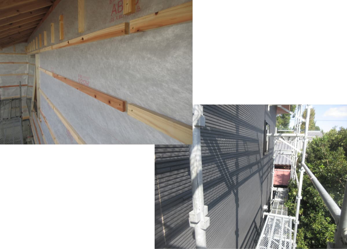 ●工程:外壁工事(通気工法)(外壁材施工)