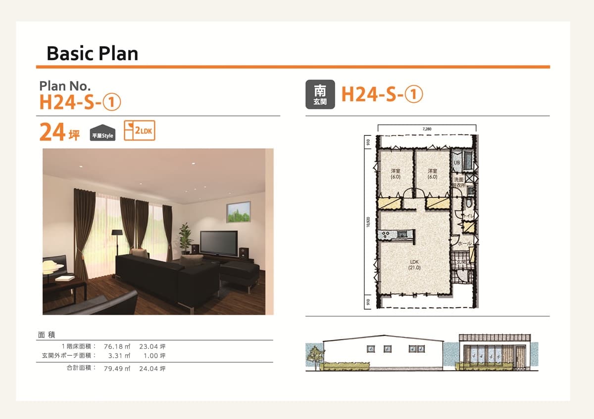 【価格の目安】平屋建2LDK(25坪)(セミオーダー住宅PLAN))