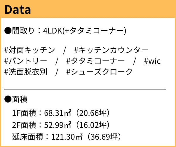 【価格の目安】二階建4LDK 36.69坪(注文住宅事例)