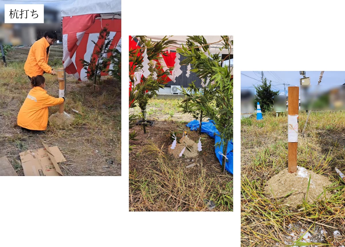6.杭打ち(くいうち):土地の神様に家づくりの成就を祈る