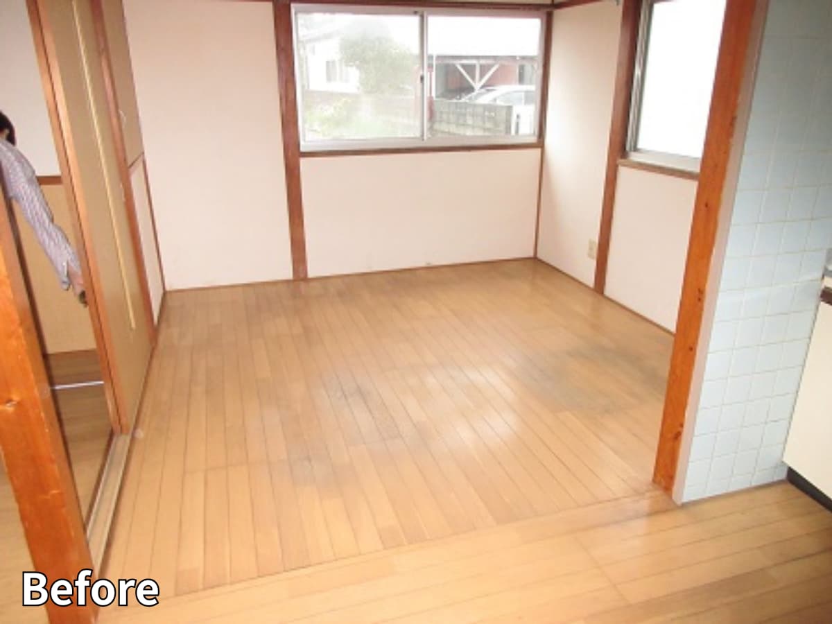既存フローリングの下地は良好な状態であった為、ご予算面も考慮し、フローリングの重ね張りでのご提案をさせて頂きました。